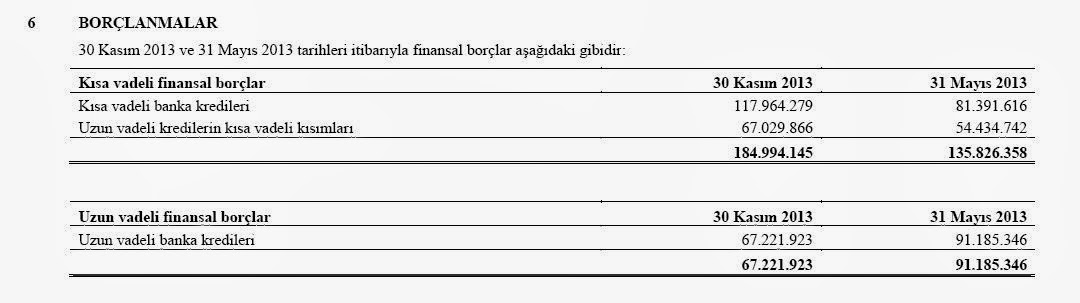 Tablonun 4-5 ve 6.ncı sırasındaki KREDİLER Mayıs 2013 Bilancosunda olmayan Borclar.. Yani Yeni kullanılmıs..